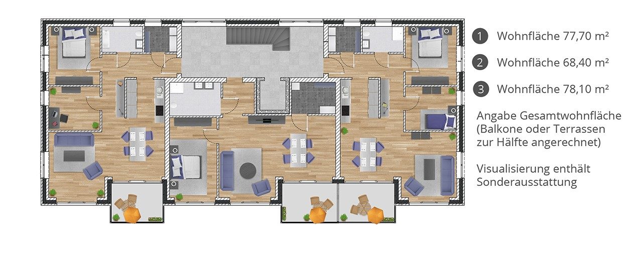 Im westlichen Bereich der Carlshöhe enstehen zurzeit drei fünfgeschossige Mehrfamilienhäuser der Komfortklasse, das dazu einlädt, neue Freiräume zu genießen. Wie alle Immobilien zeichnet sich der Neubau durch eine zeitlose-moderne Architektur aus. Die Fassaden werden dabei optisch in die Umgebung der alten Backsteingebäude eingefügt. Interessenten haben die Wahl unter 45 nach Süd-West ausgerichteten Hang-Wohnungen mit großzügig geschnittenen 70 – 78 Quadratmetern Wohnfläche. Immer mit dabei: große Balkone oder Terrassen.
